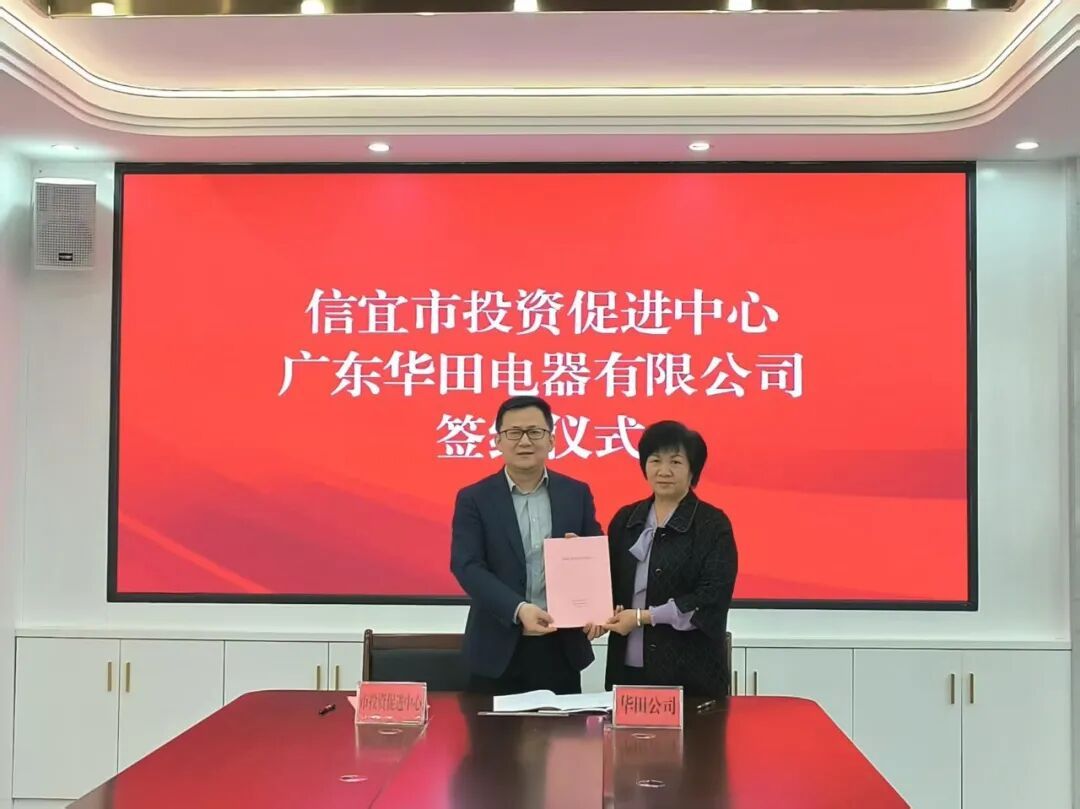▲信宜市投资促进中心与广东华田电器有限公司签约